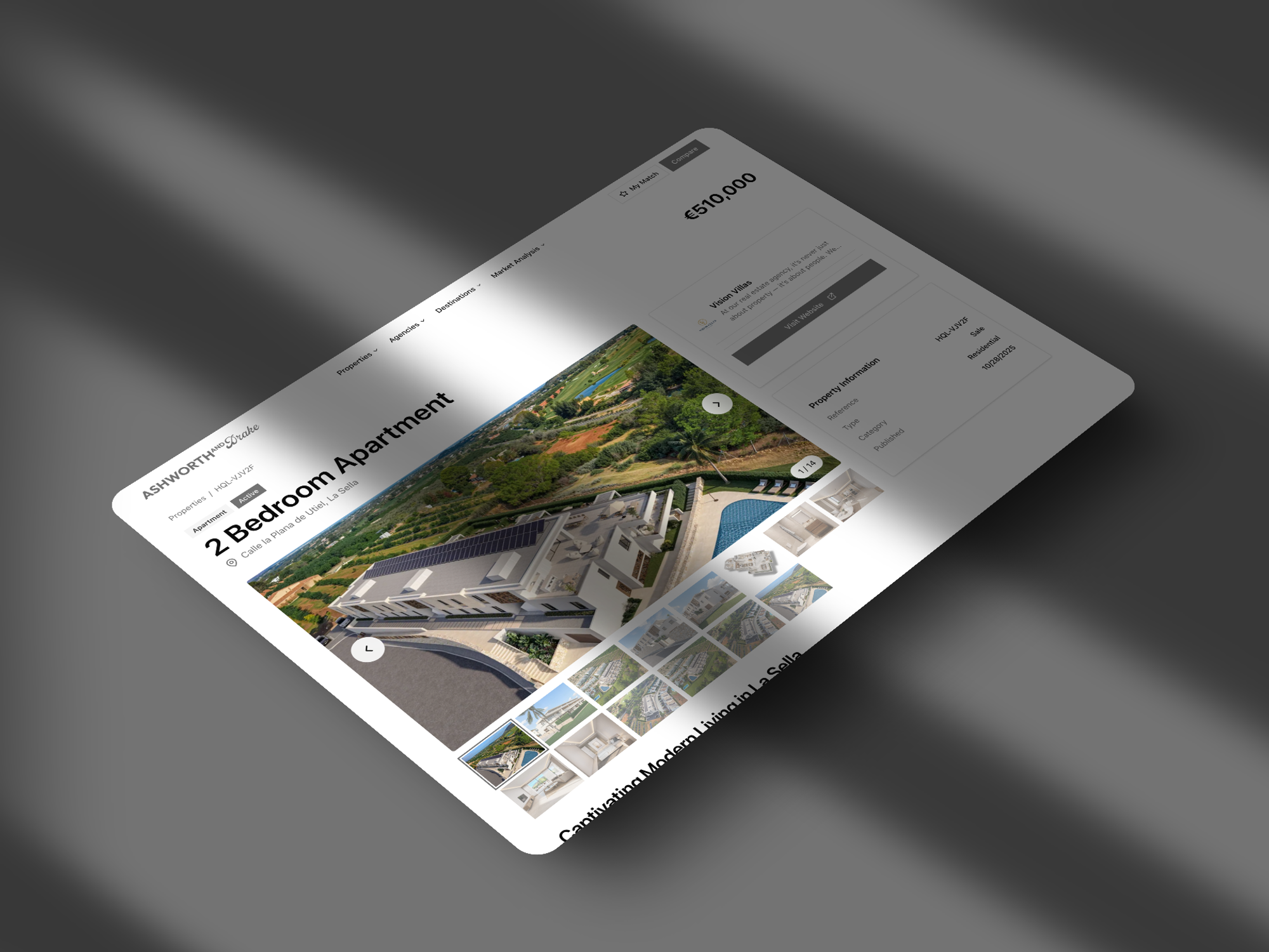 Beyond these dedicated content pieces, Vision Villas gained another significant visibility advantage: dedicated property pages across all LeadHQL brand sites. For example, the La Sella apartment now appears on Ashworth & Drake's property showcase, where potential buyers can view complete details, browse similar properties, and connect directly with Vision Villas.