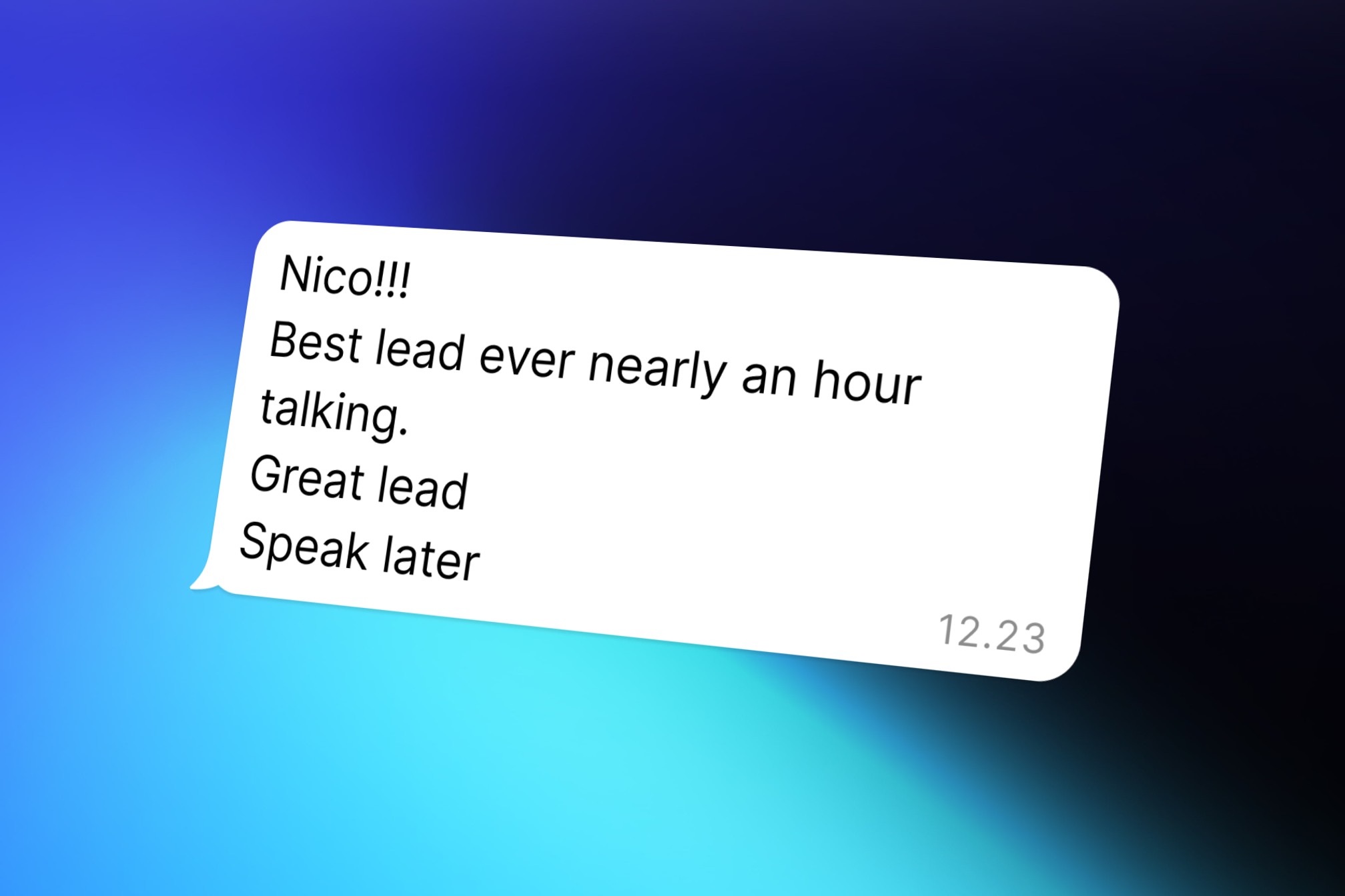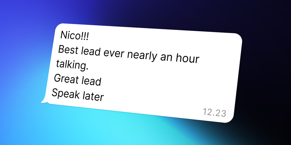 "Nico!!! Best lead ever nearly an hour talking. Great lead. Speak later"